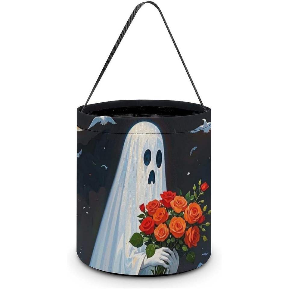 Grands sacs à bonbons réutilisables pour Halloween Citrouilles Fleurs Sac à collation Seau à friandises Cadeaux pour la fête des enfants