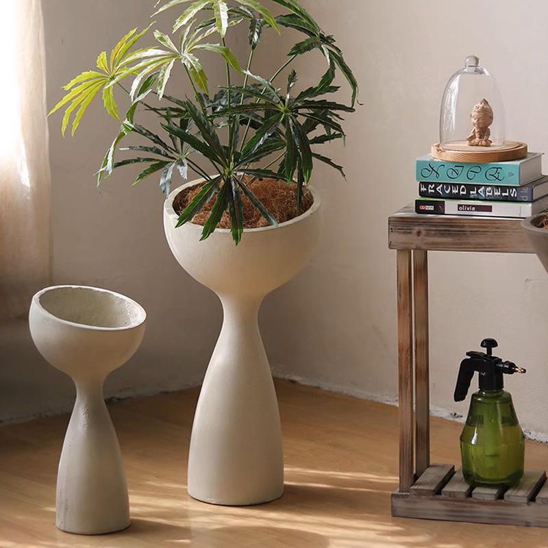 Grand pot de fleurs en fibre de verre effet marbre de forme cylindrique ronde avec plateau pour la décoration du sol de la maison et du jardin