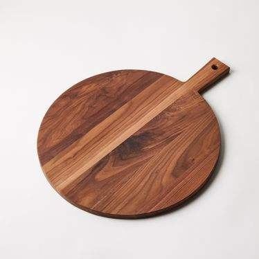 Grande planche à pizza ronde en bois naturel faite à la main avec rainure à jus Plateau de service en bois rustique pour pizza et collations