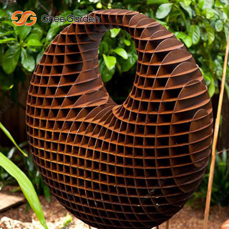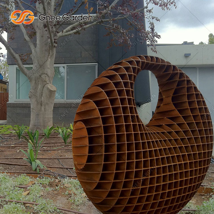 Grande sculpture ronde créative en acier corten Art de jardin extérieur populaire pour décoration de patio Nouvelle forme créative