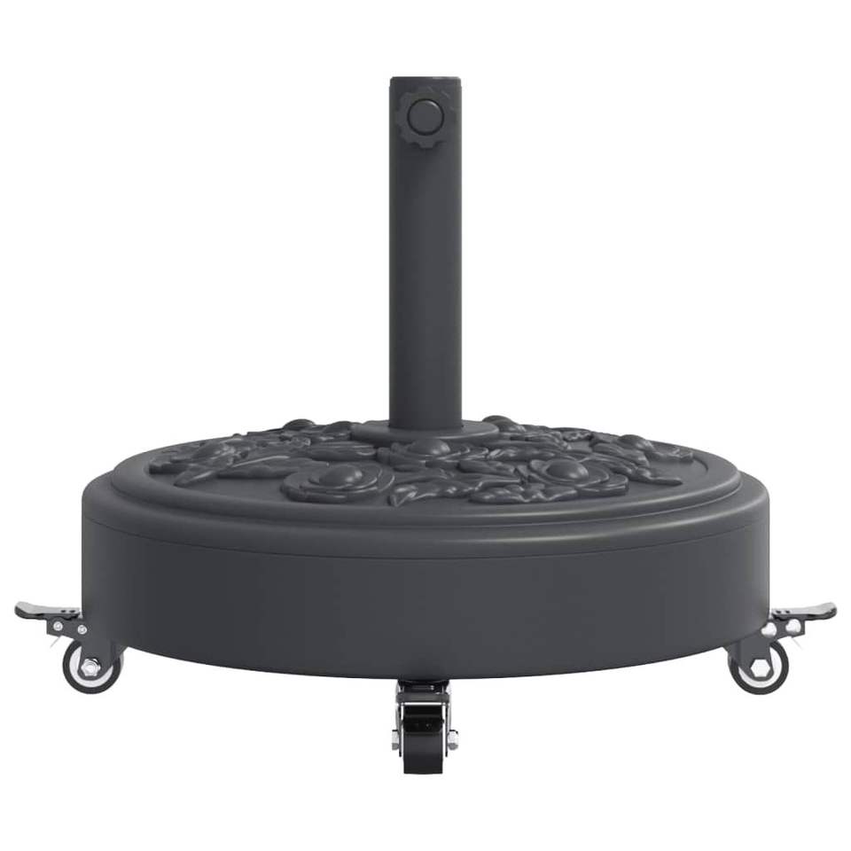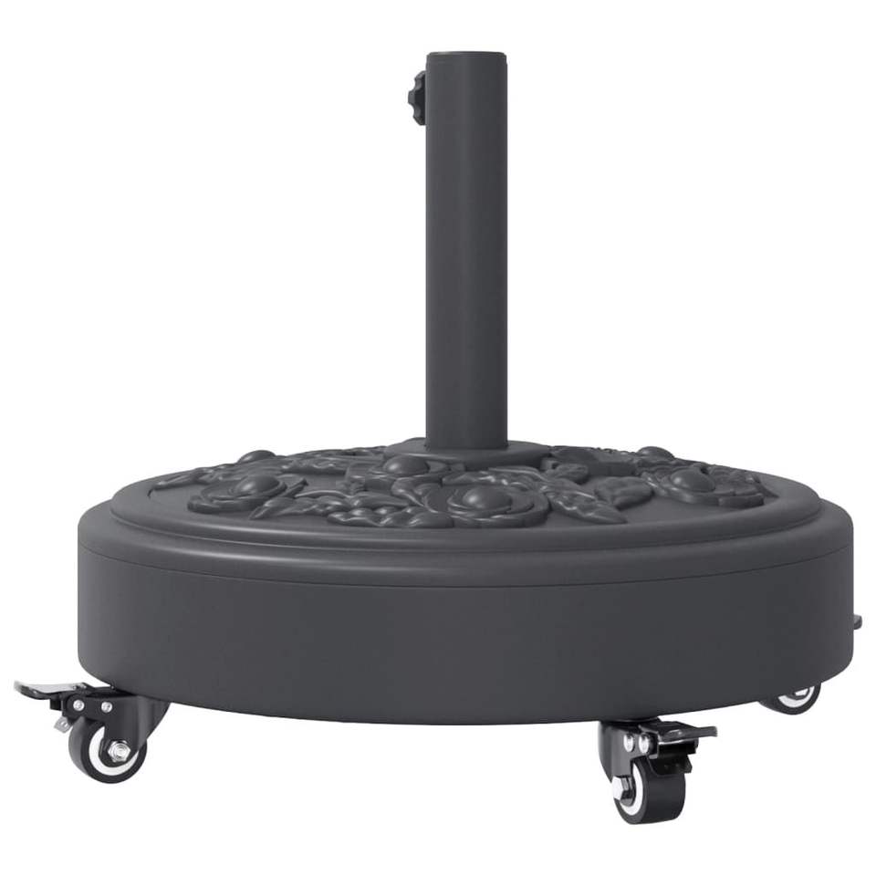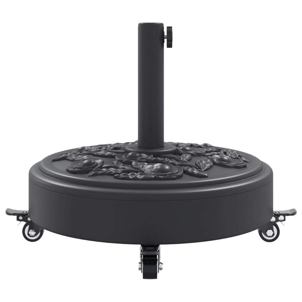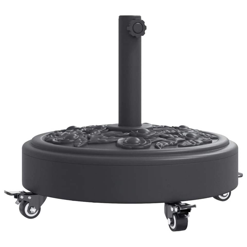 Grande base de parasol ronde en polyéthylène noir pour usage extérieur sur patio, avec roues et motif en relief