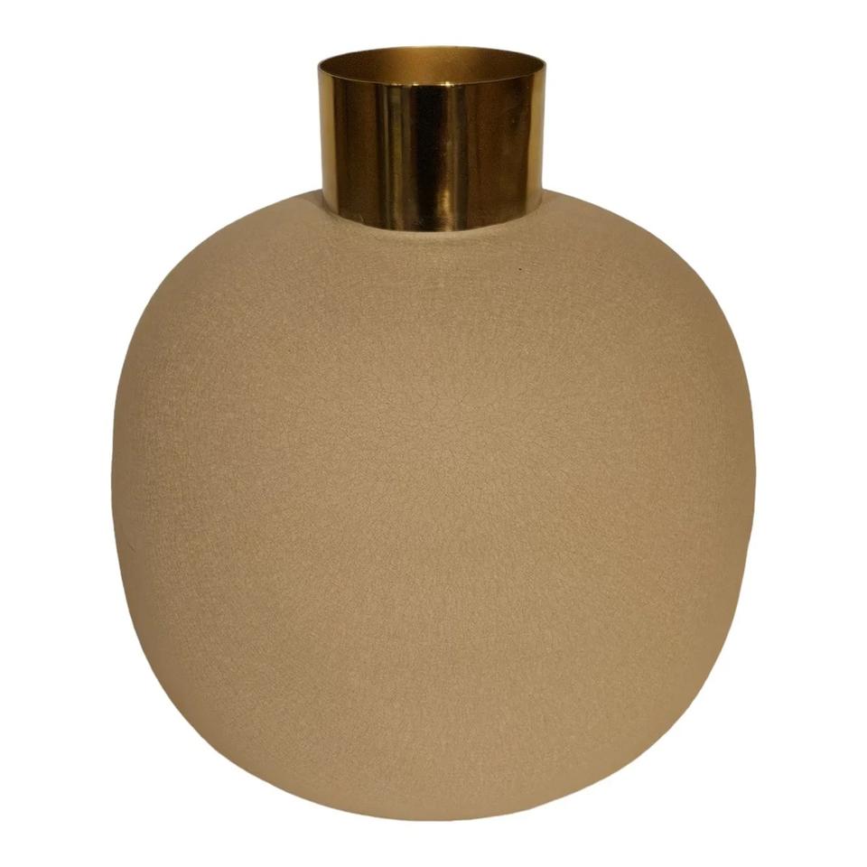 Grand pot à fleurs rond en céramique de grès | Vase en céramique avec col doré électro-plaqué | Vase artisanal de fleurs séchées pour la décoration intérieure