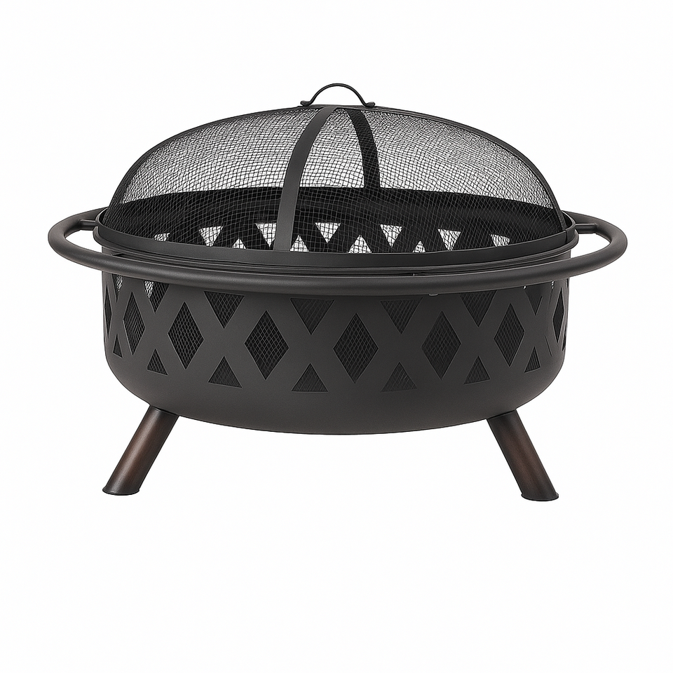 Grand foyer rond en acier pour brûler du bois avec écran anti-étincelles, noir, tissage croisé, chauffage de patio, barbecue, utilisation en extérieur, produit en gros