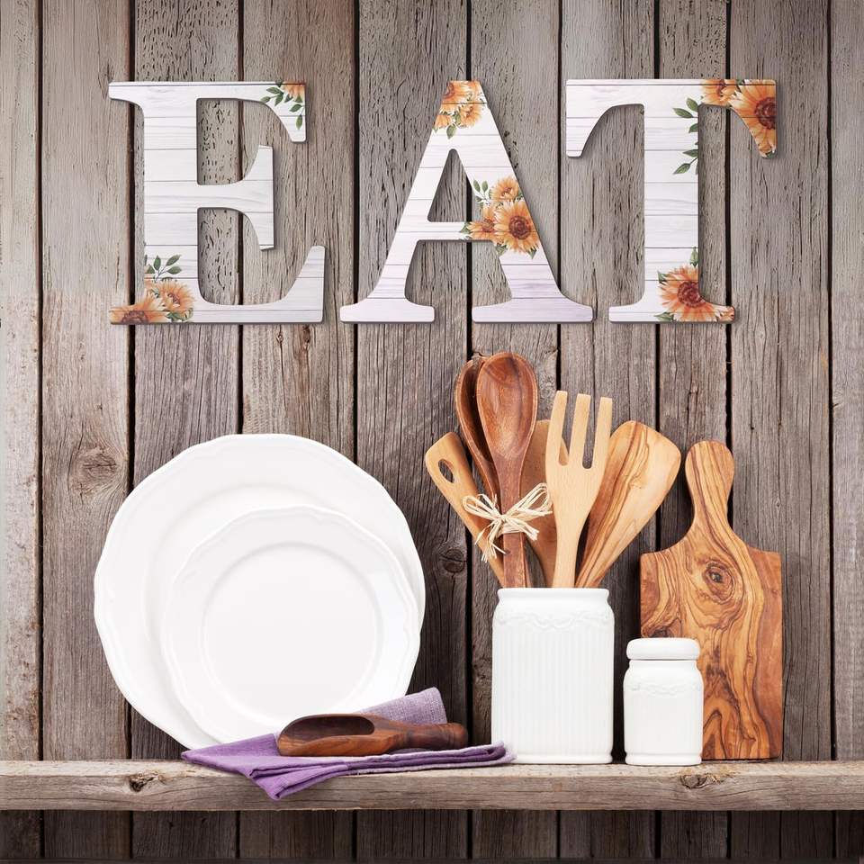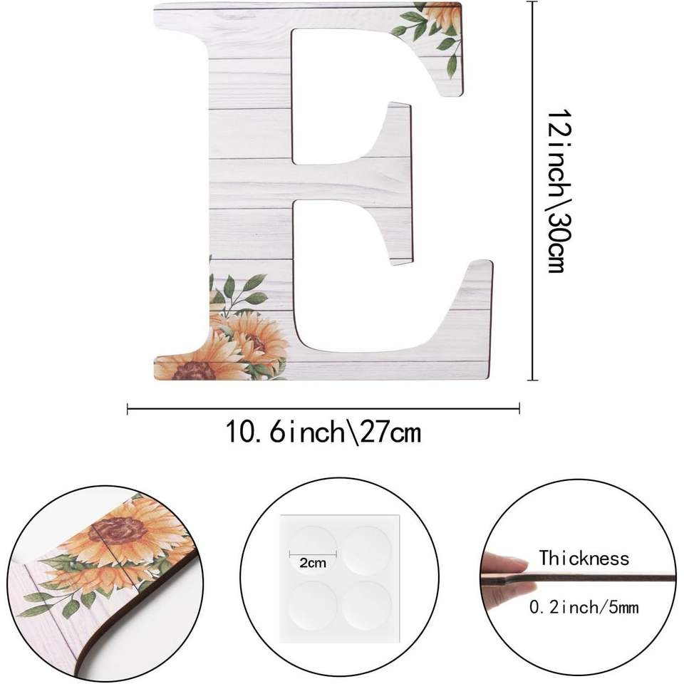 Grandes lettres murales en bois rustiques de 12 pouces, motif tournesol, pour la décoration intérieure, enseignes murales en bois