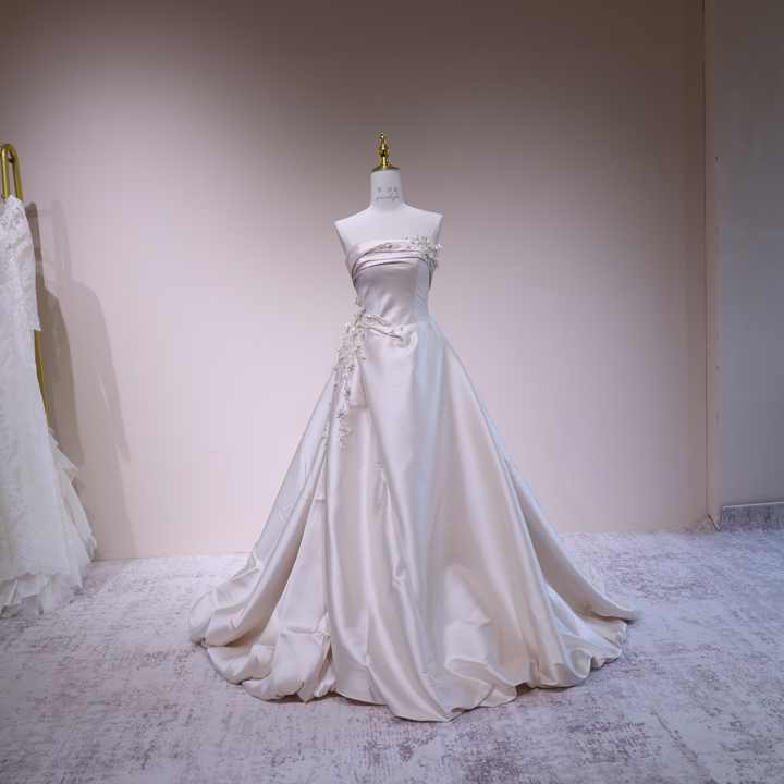Soldes de grande envergure : Robes de mariée haut de gamme, styles développés en interne par l'usine, robes de soirée pas chères sans bretelles, coupe trapèze avec traîne chapelle