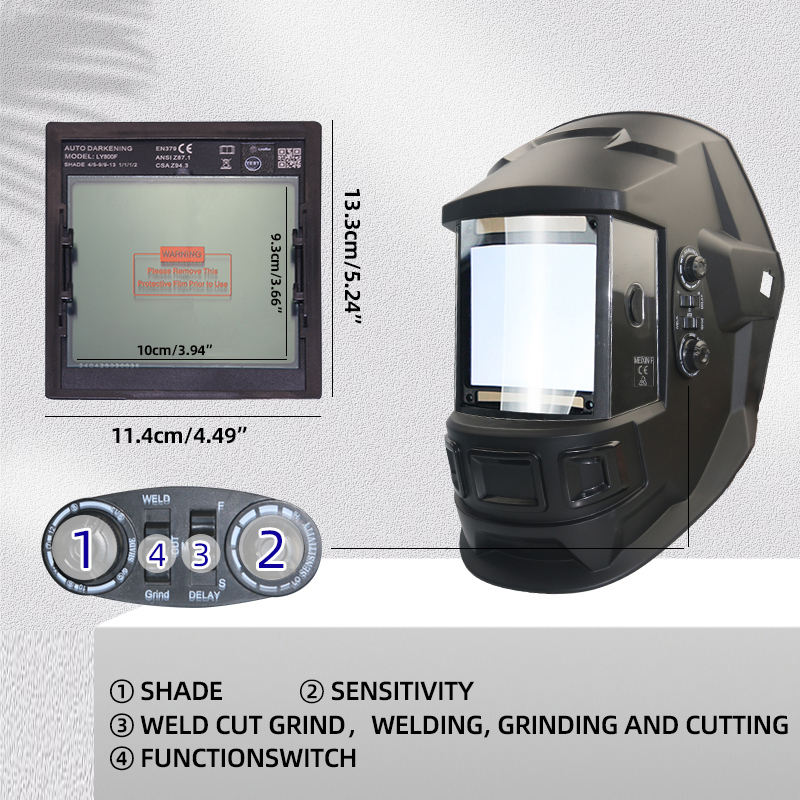 Casque de soudage solaire à obscurcissement automatique grand écran 3,94 " x 3,66 " à couleurs réelles, capot large à 4 capteurs pour soudage TIG MIG Arc