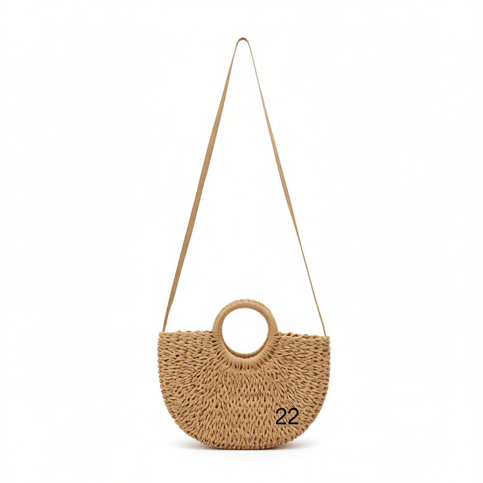 Grand sac bandoulière semi-circulaire en papier tressé 42x30cm, sac fourre-tout en paille fait main pour femme, idéal pour la plage en été