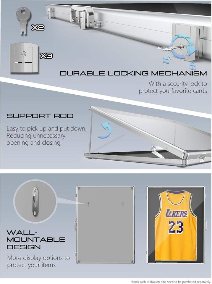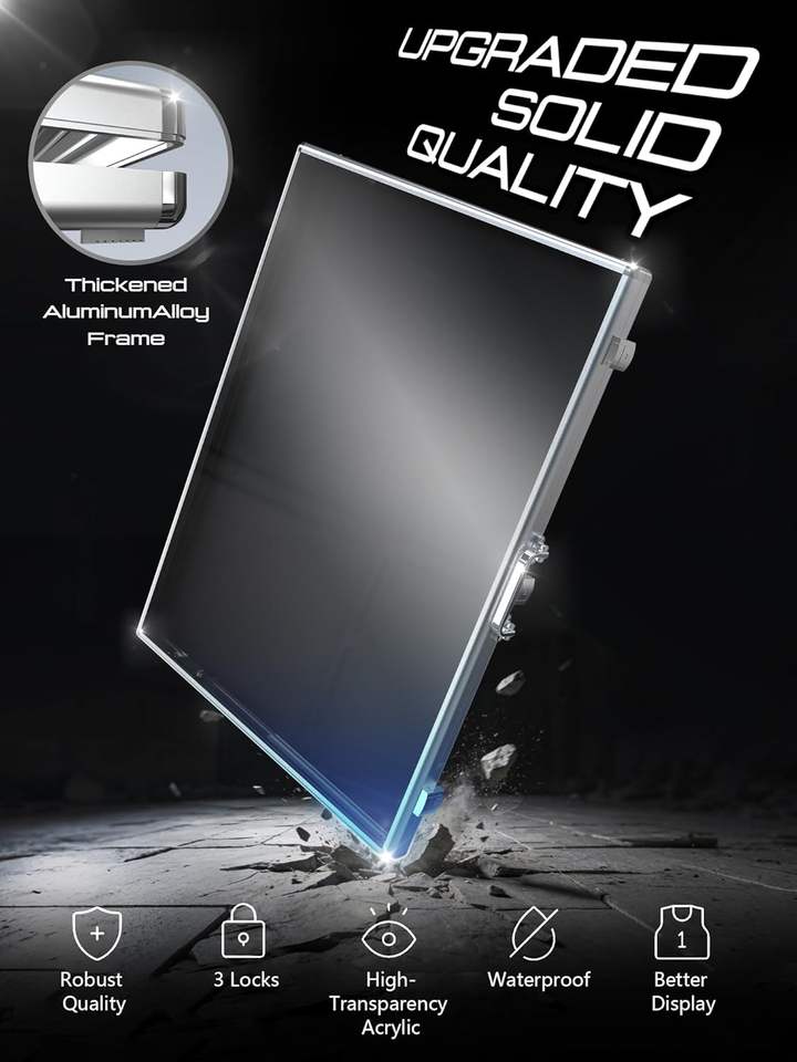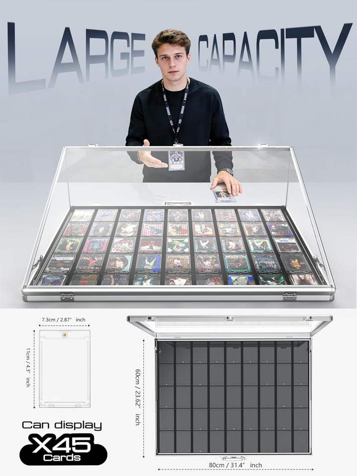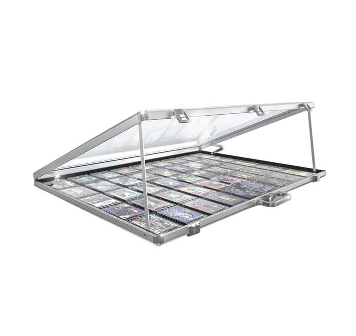 Grande vitrine d'exposition pour cartes argentées, cadre d'affichage portable en aluminium pour cartes de collection et gradées avec serrures