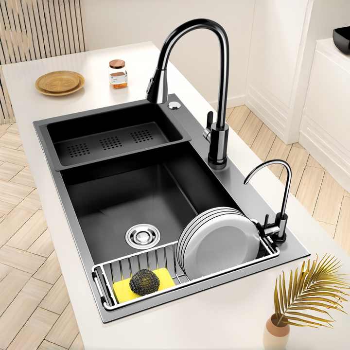 Grand évier simple en acier inoxydable 304, à encastrer, épaissi, pour cuisine domestique