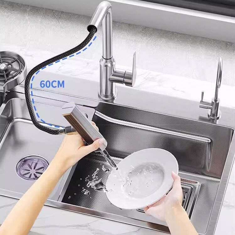 Grand évier de cuisine à cuve unique en acier inoxydable 304, gaufré argenté, durable et pratique, trois types d'installation