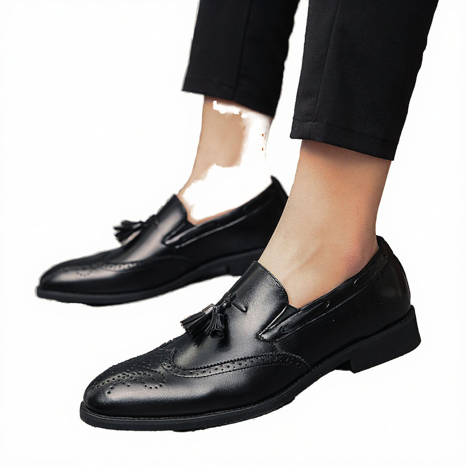 Mocassins à bout pointu et à glands de grande taille 38-48 pour hommes, chaussures habillées de bureau en marron et noir pour l'hiver, l'automne et l'été, semelle en caoutchouc