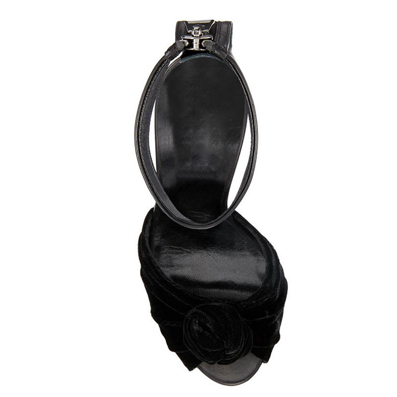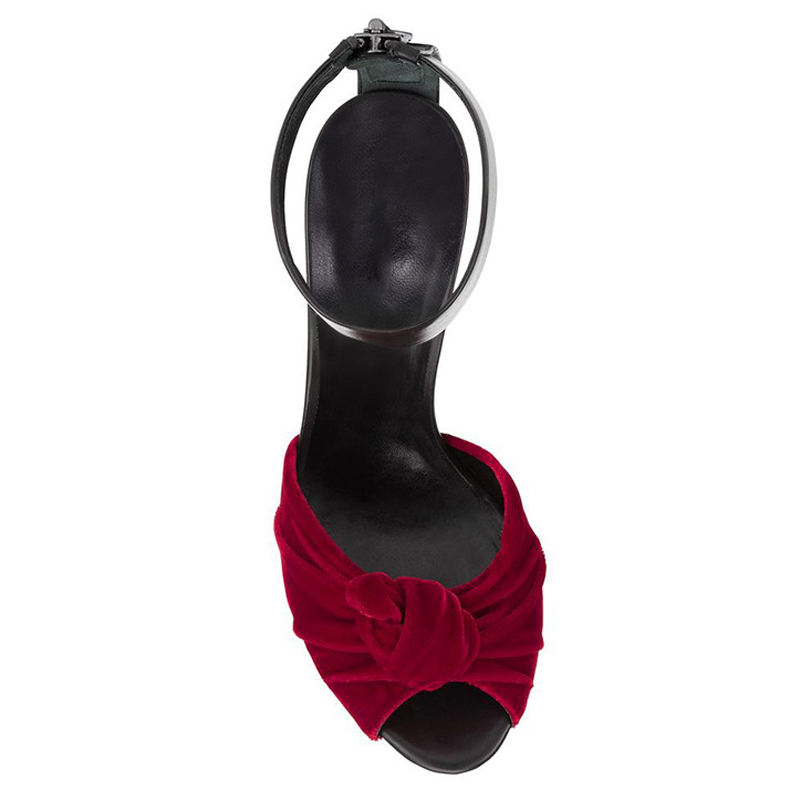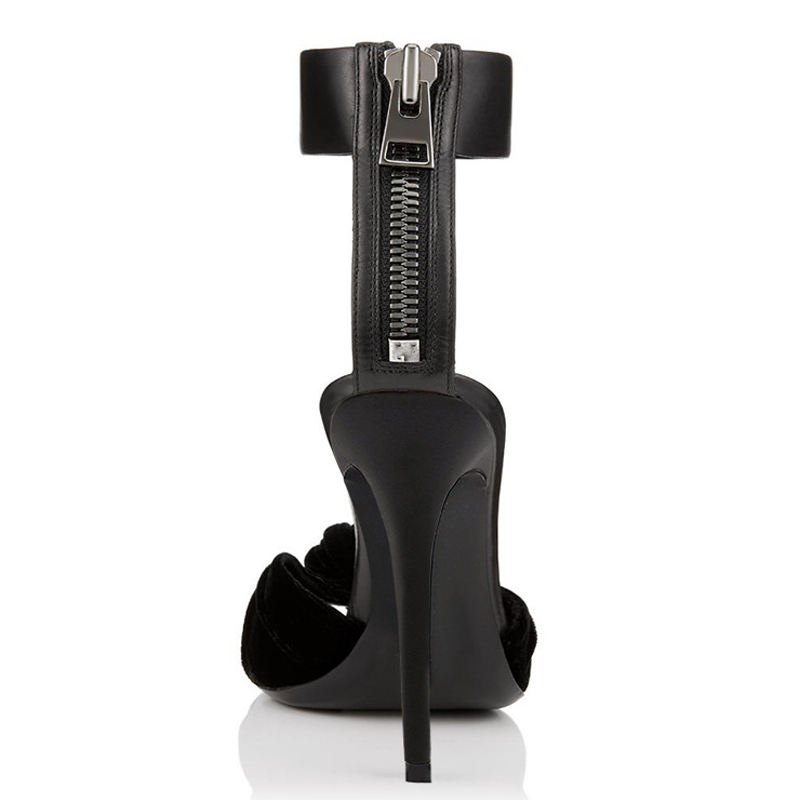Sandales à talons hauts peep toe en daim noué pour femme, grande taille 46, avec fermeture éclair arrière, escarpins d'été en velours à bride cheville pour femme