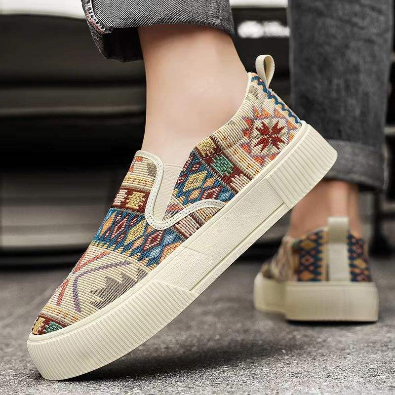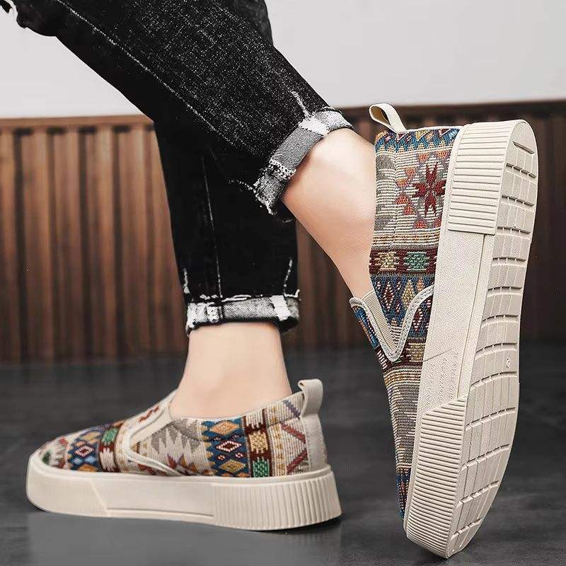 Chaussures de skate grande taille pour hommes, baskets à semelle épaisse, polyvalentes, respirantes, avec surface en tissu à blocs, style décontracté en toile pour la marche