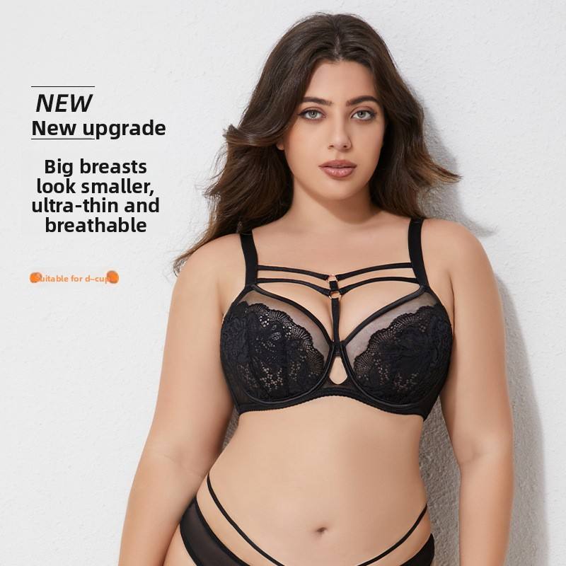 Soutien-gorge d'été grande taille respirant à motif floral gothique avec maintien pour poitrine généreuse et dentelle ultra-fine pour femme