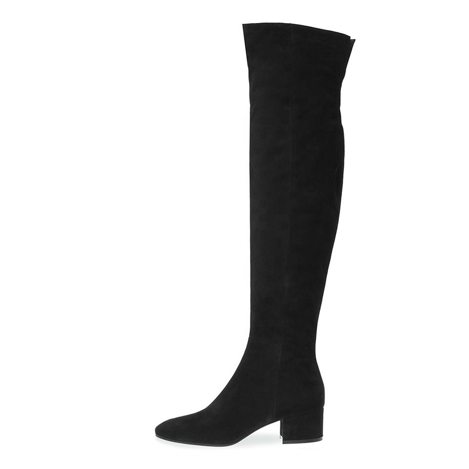 Botte noire décontractée pour femme, grande taille, bout rond, talon carré épais, automne-hiver, cuissardes