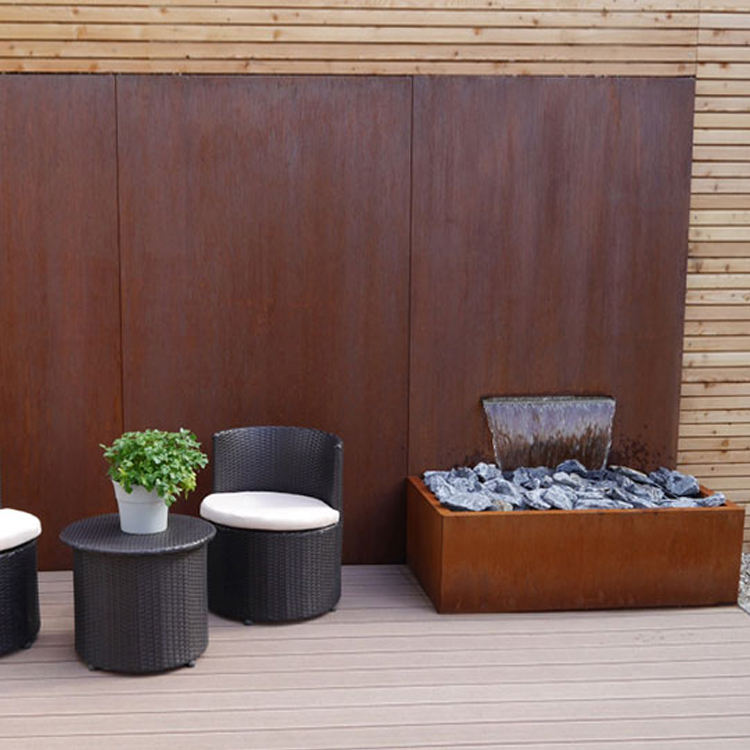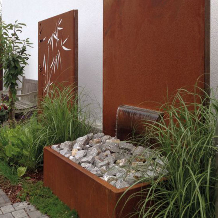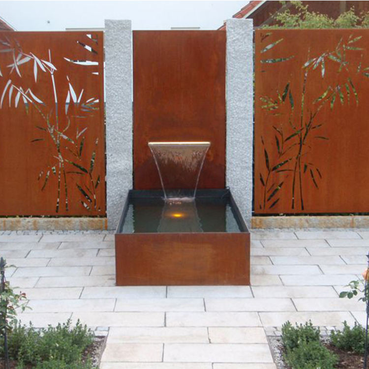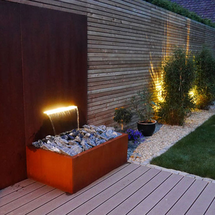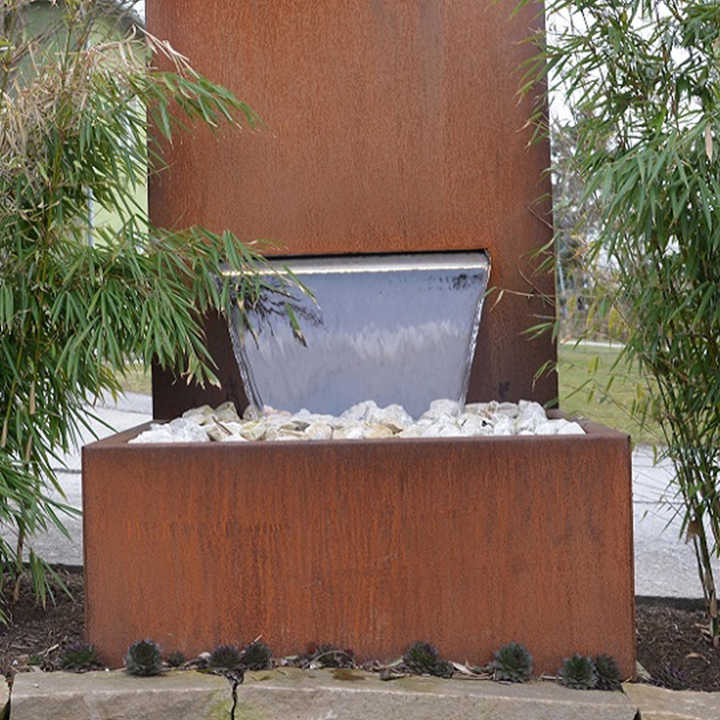 Fontaines d'eau extérieures écologiques en acier Corten de grande taille, fontaines musicales dansantes avec cascade