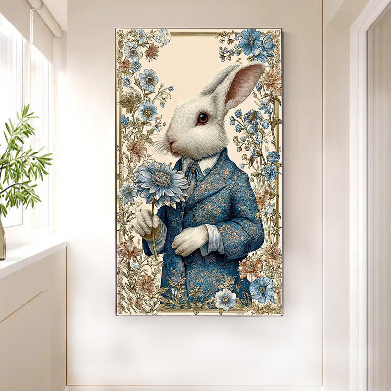 Peinture par numéros de grande taille à faire soi-même : un M. Lapin tenant une fleur, peinture acrylique de haute qualité pour la décoration murale de la maison