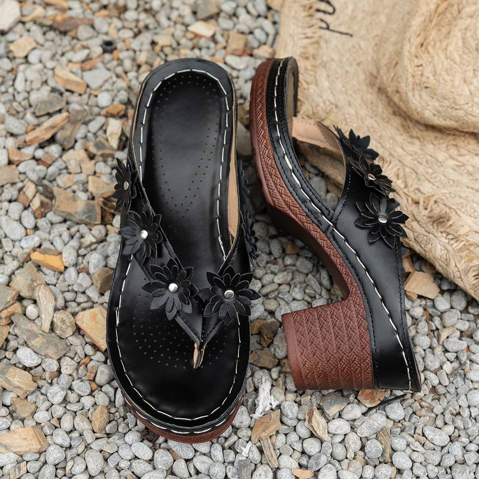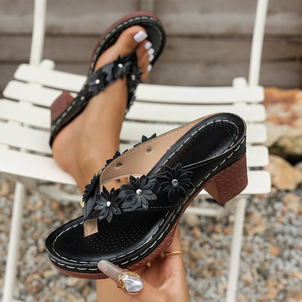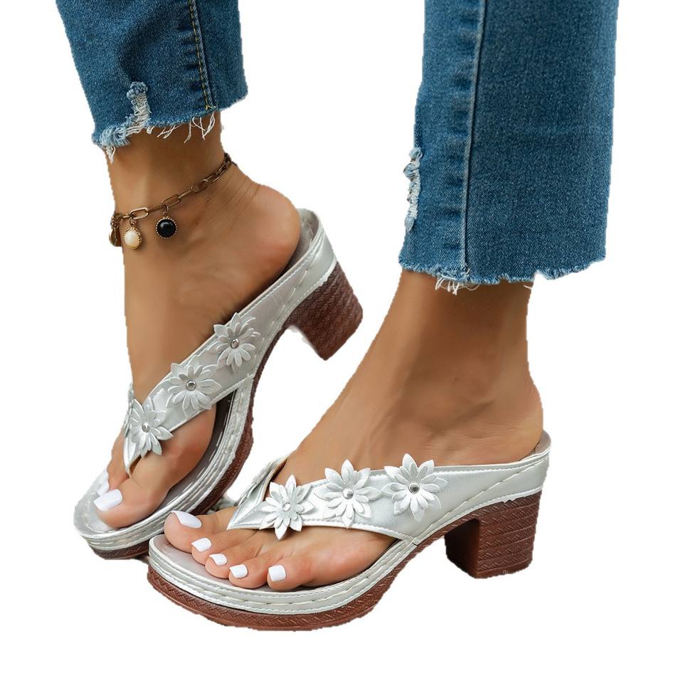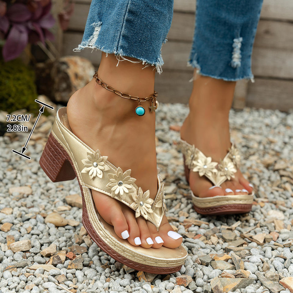 Tongs grande taille à talon moyen, motif floral, style européen et américain, pour femme, plage, vente en gros, taille 43