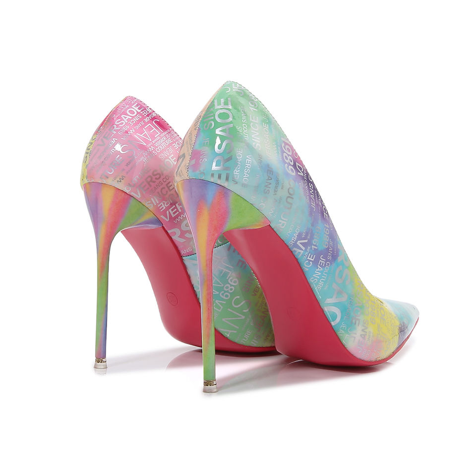 Nom du produit:Mesdames 12 CM arc-en-ciel tricot talon haut brillant Spike talon chaussures
