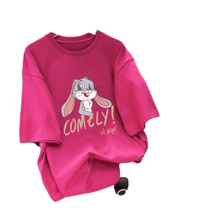 T-shirt à manches courtes pour femme, grande taille, en coton peigné respirant, décontracté, mignon, imprimé de dessins animés, col rond, taille plus, pour l'été