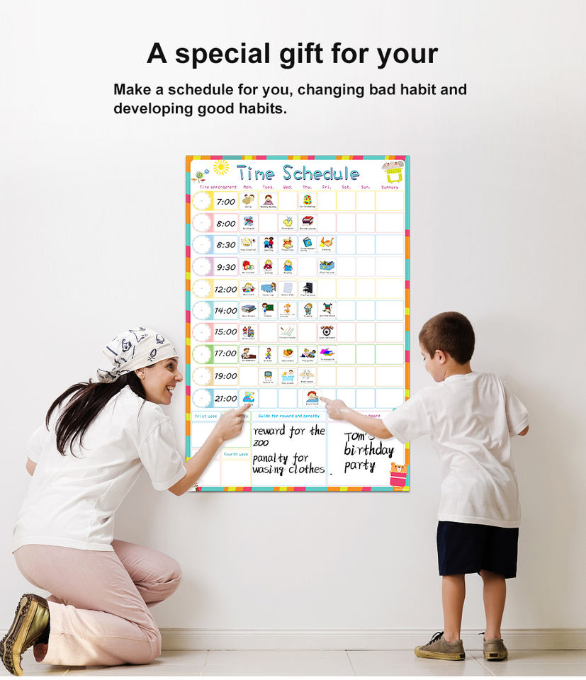 Tableau blanc magnétique de grande taille Planificateur hebdomadaire personnalisé Feuilles effaçables à sec Tableau blanc Autocollant magnétique pour réfrigérateur