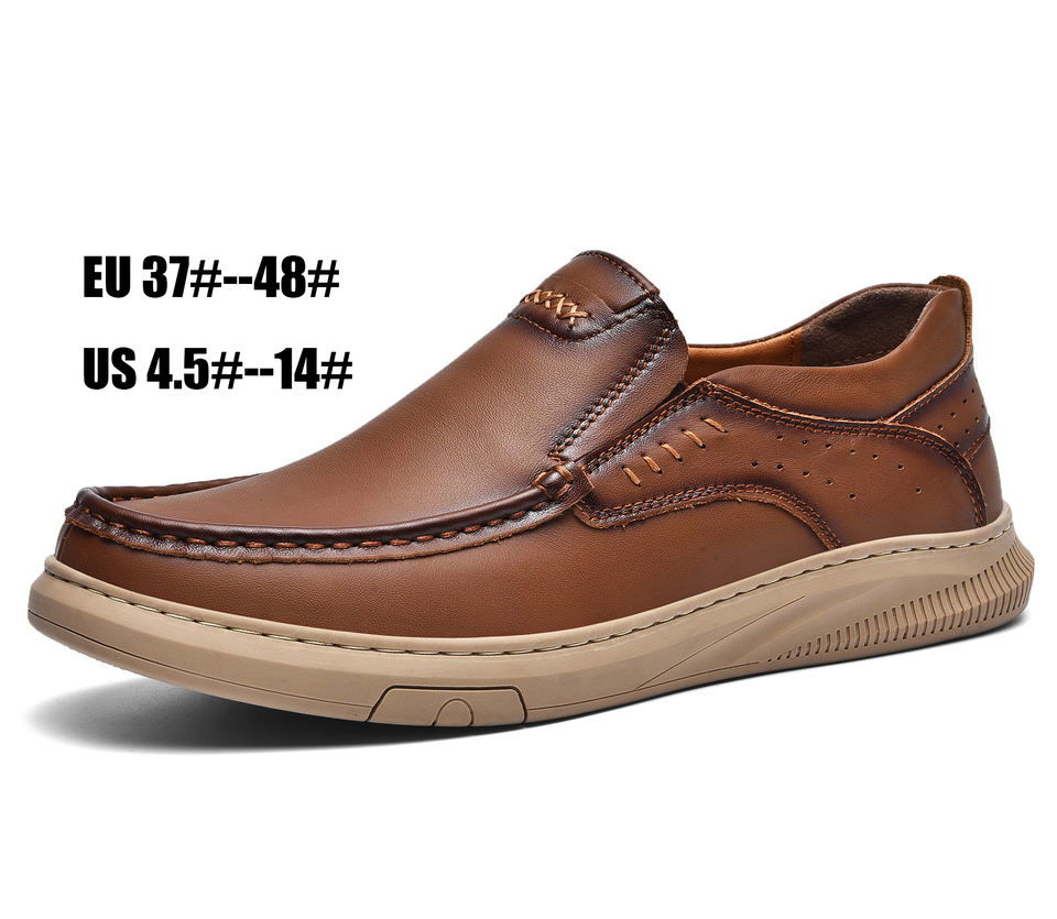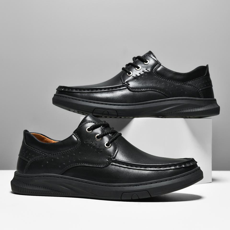 Chaussures décontractées à lacets pour hommes grande taille, en cuir de vachette double couche, semelle extérieure en caoutchouc, doublure en peau de porc/PU, couleur unie noir, collection automne
