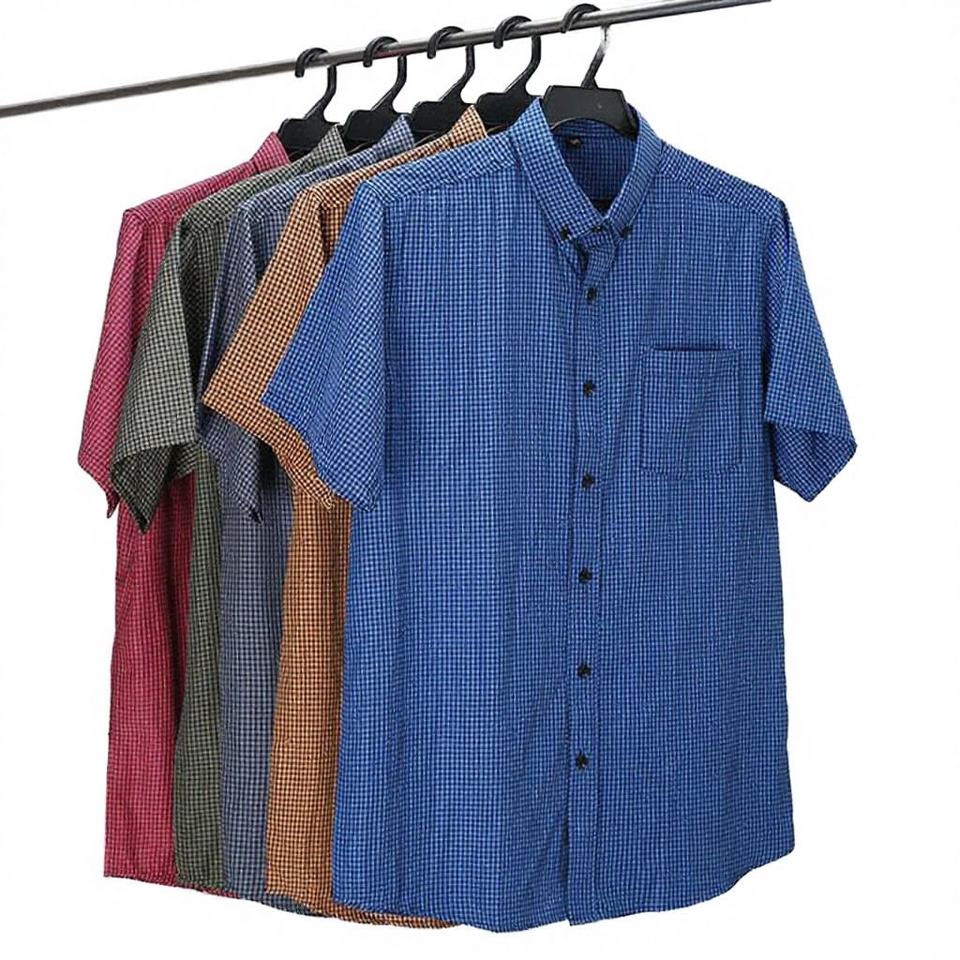 Chemise tissée à manches courtes pour homme grande taille, col carré, respirante, anti-boulochage, infroissable, formelle et décontractée, à carreaux