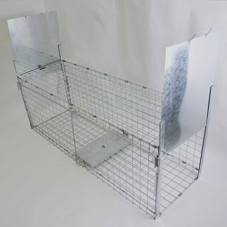 Piège en métal de grande taille pour animaux, cage de piège à chien pour attraper des animaux, raton laveur, chat errant, marmotte, Opossum