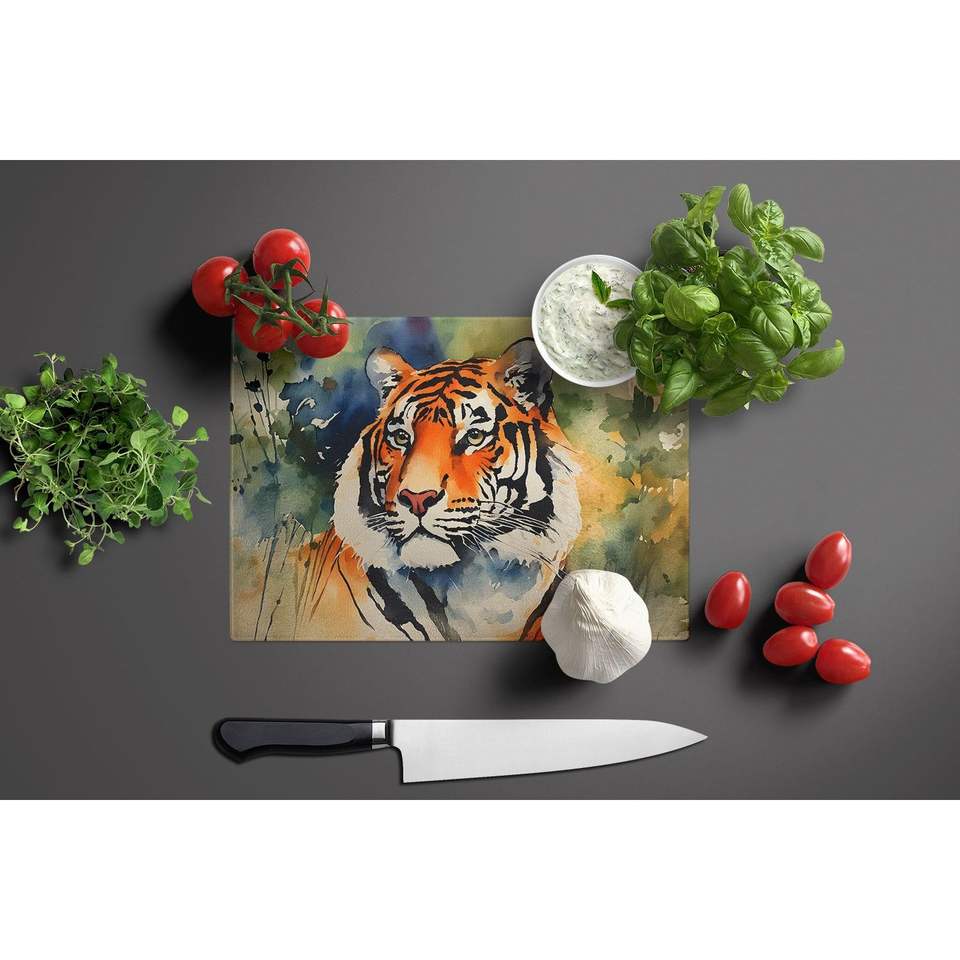 Planche à découper et de service en verre trempé décorative, grande taille, nouveau design Tigre, pour cuisine, avec motifs peints