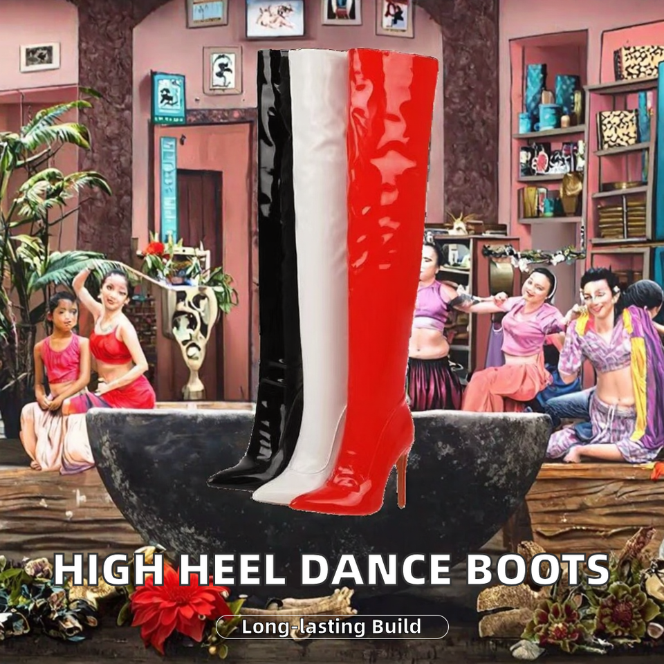 Bottes de danse à talon haut sur le genou de grande taille pour printemps automne chaussures de danse orientale sexy pour boutique de nuit