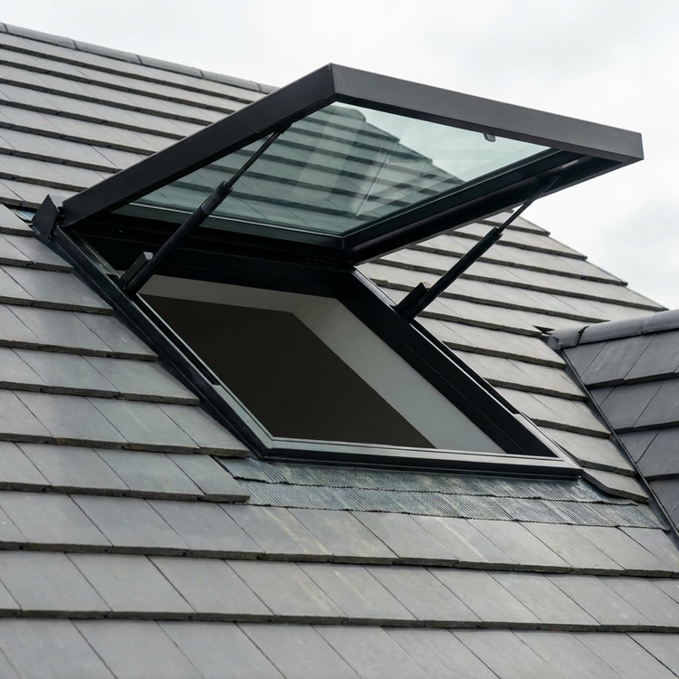 Lucarne en verre motorisée électrique à ouverture automatique et marche sur verre