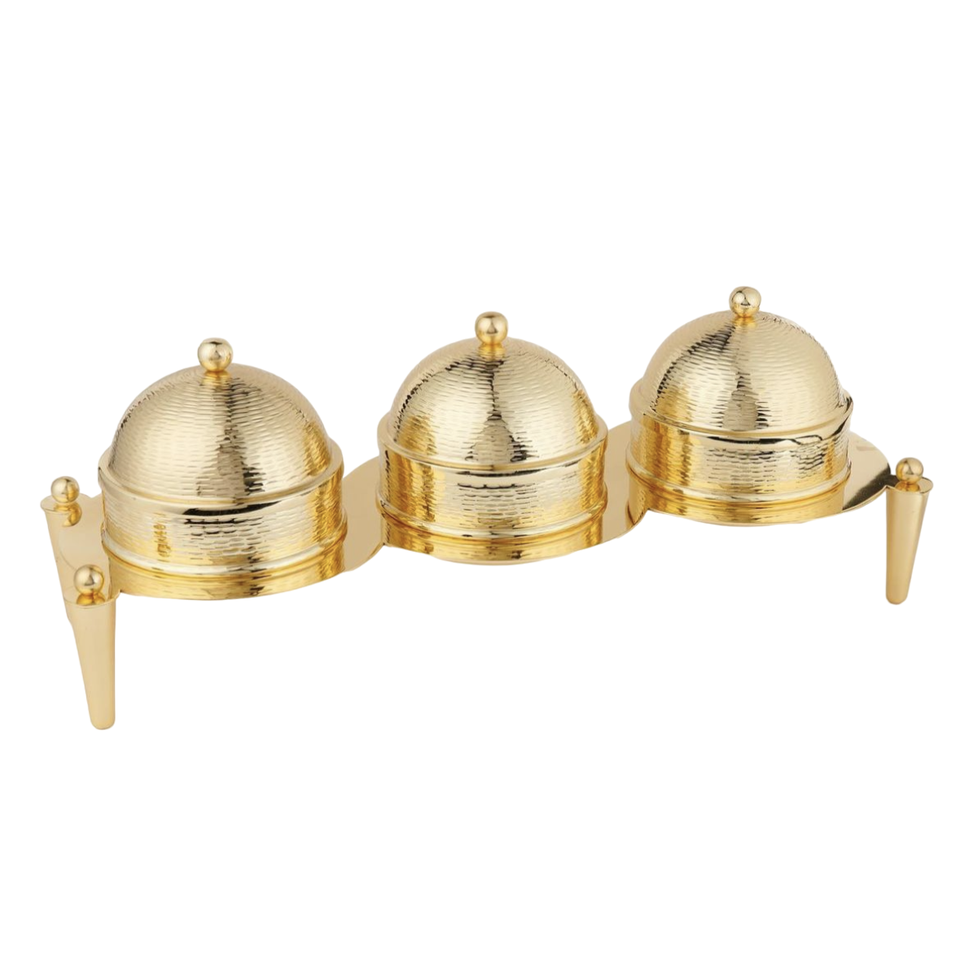 Grand plat de service décoratif en acier inoxydable écologique pour dattes et desserts, couleur or, design personnalisé gravé