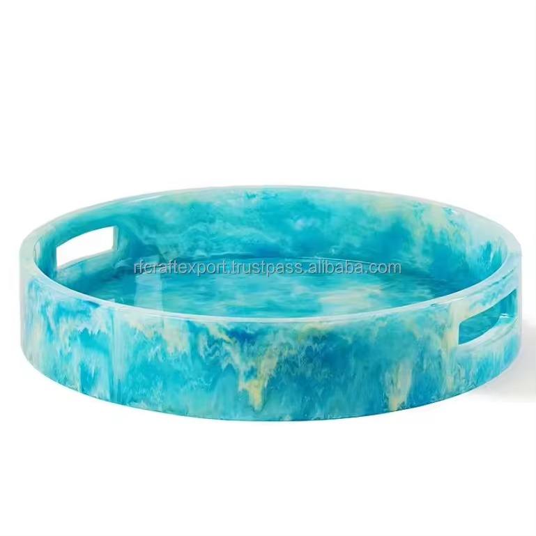 Plateau de service décoratif en résine écologique fait main de grande taille pour la table à manger, la présentation des aliments et les services de traiteur pour les fêtes