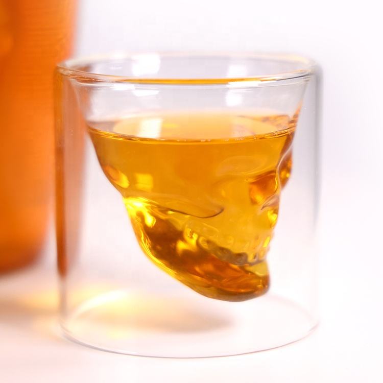 factory wholesale high quality high borosilicate glass skull shape bottle