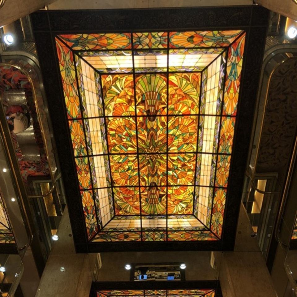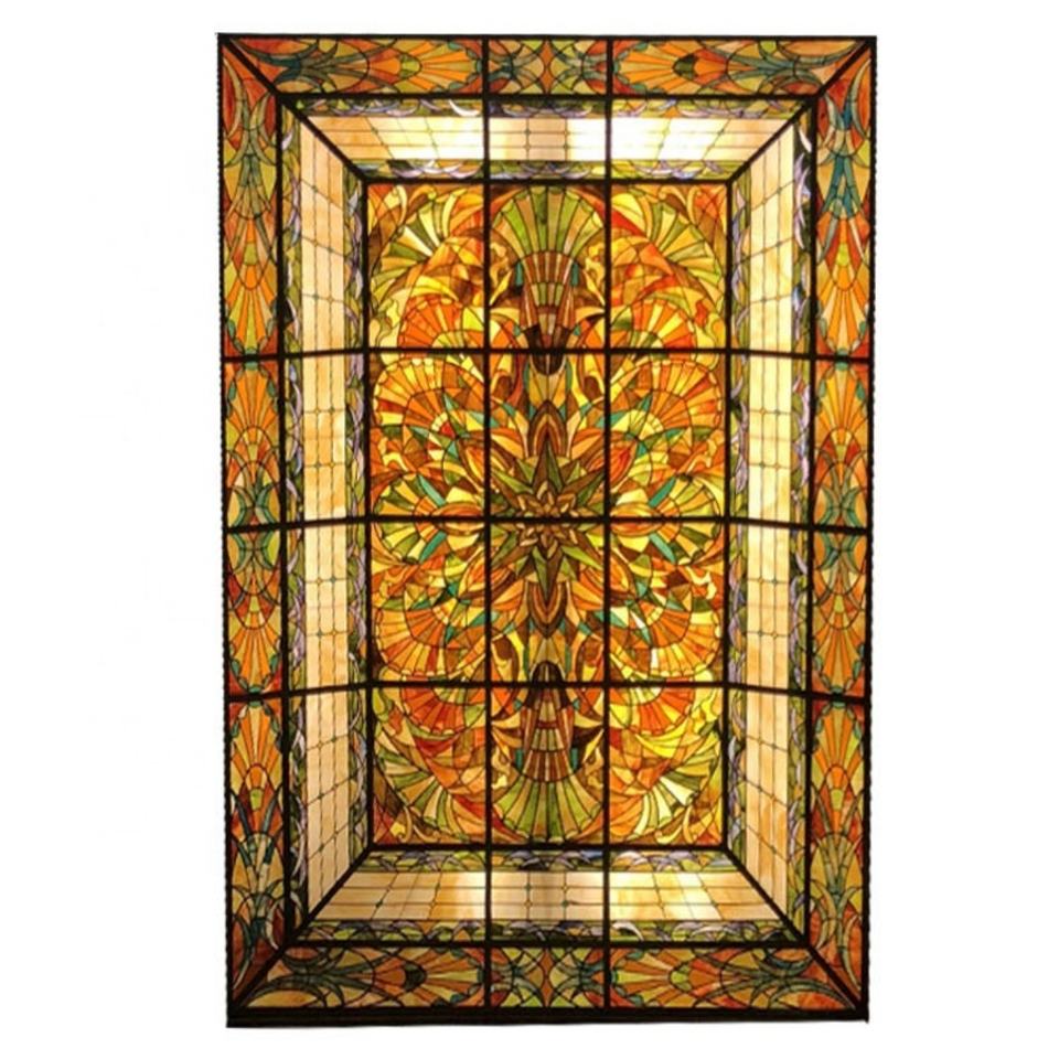 Grande Décoration Murale en Verre Tiffany Teinté pour Plafond, Motif Skyline, pour Hôtels, Villas, Salles et Gymnases - Durable