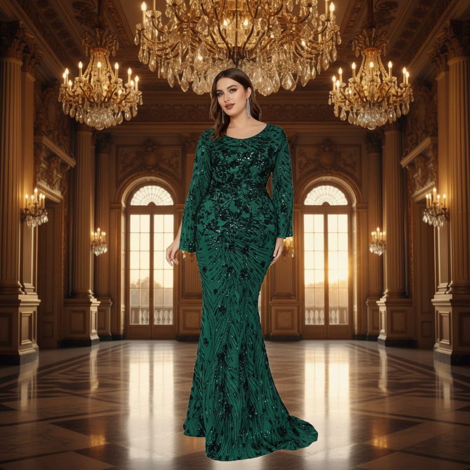 Robe de soirée longue à sequins de grande taille, amincissante, à queue de poisson, pour femmes, pour les soirées, robes de soirée pour femmes