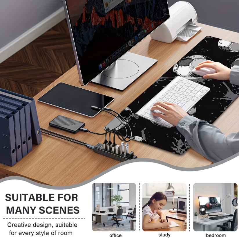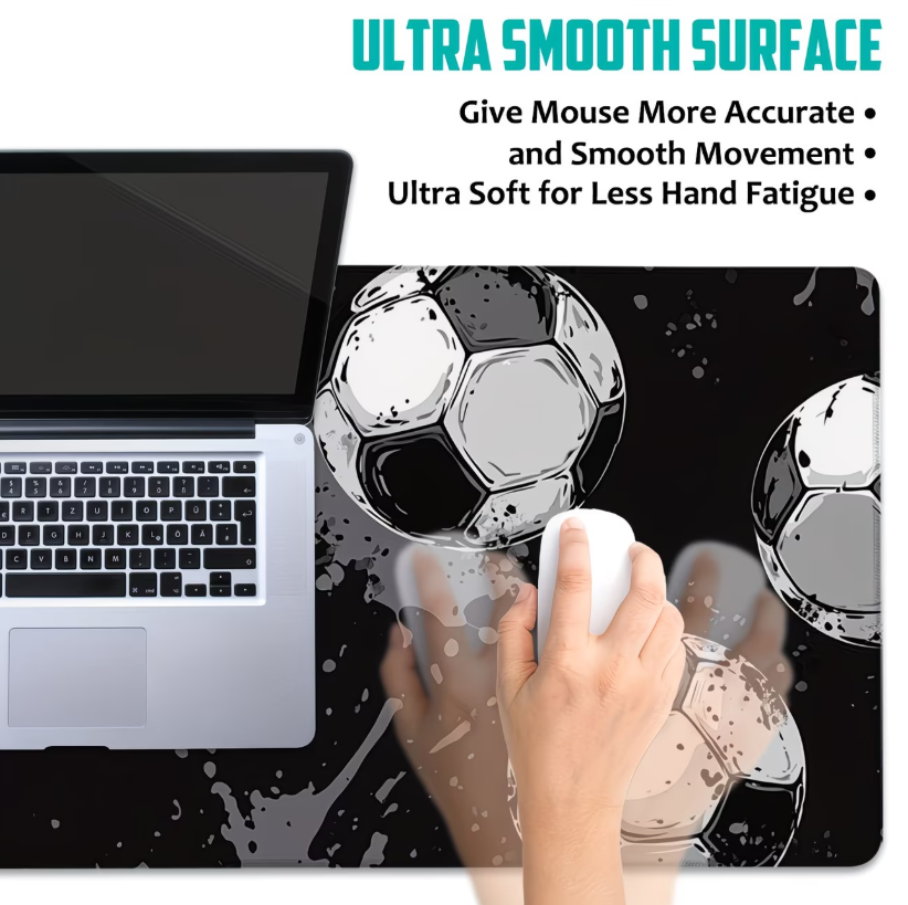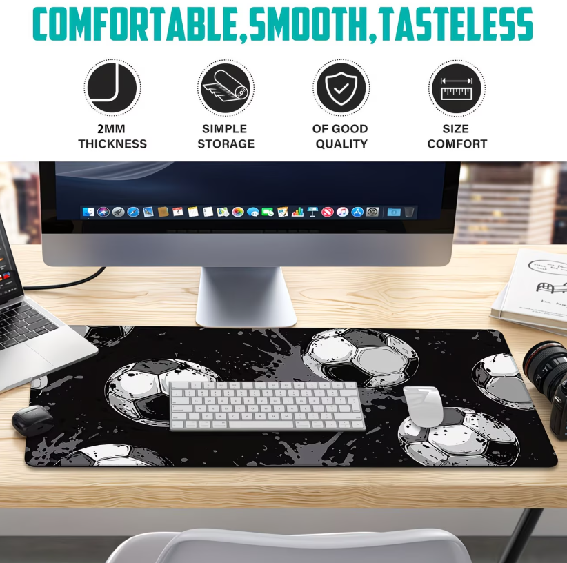 Grand tapis de souris de bureau pour jeux de football, design noir vibrant, parfait pour adolescents, garçons, filles, tapis de souris de bureau.