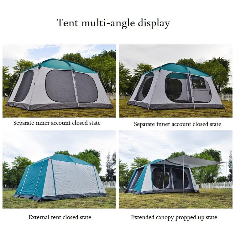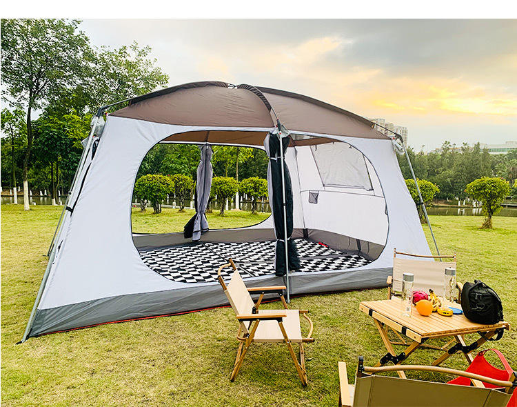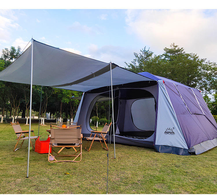Grande tente Oxford double couche quatre saisons, imperméable, épaissie, deux chambres, un salon, pour 6-8 personnes, camping
