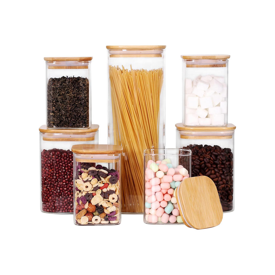 Nom du produit:Bocal de conservation en verre avec couvercle en bambou
