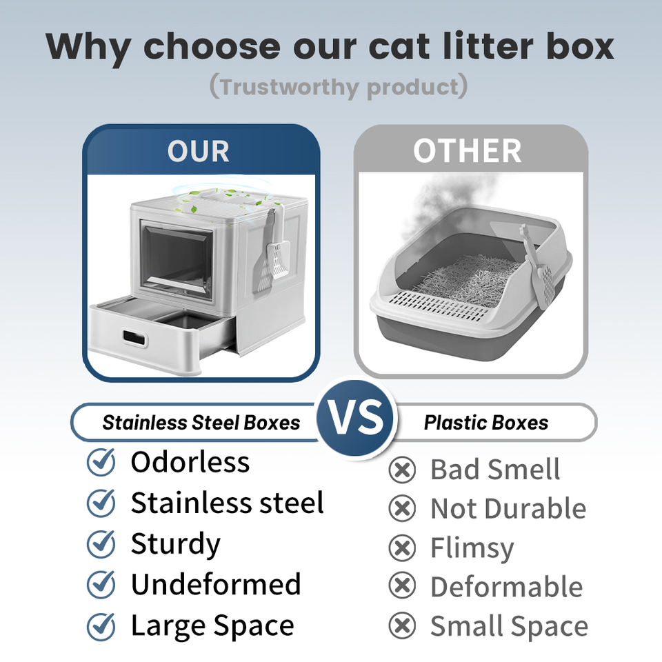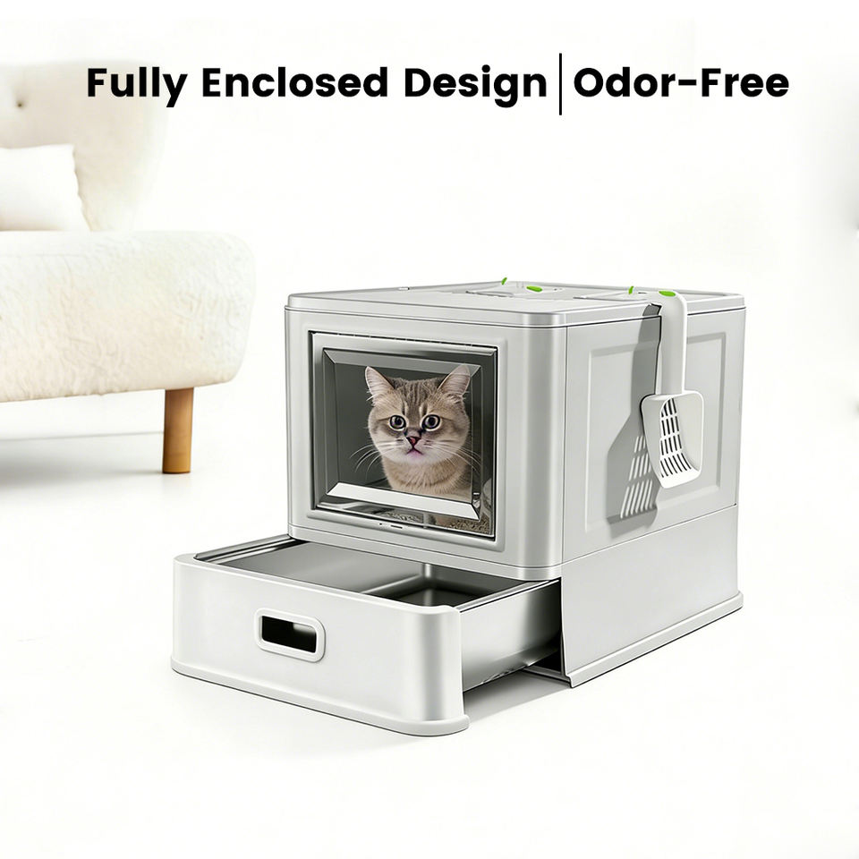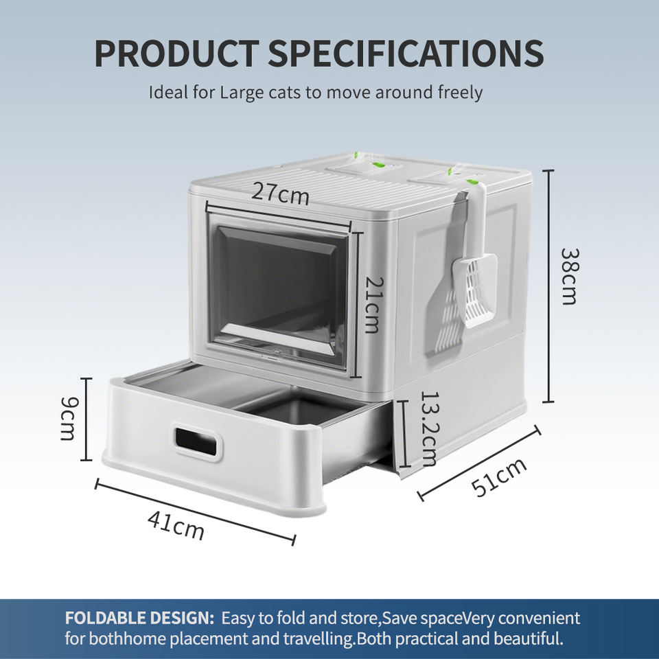 Grande litière pour chat en acier inoxydable entièrement fermée, pliable, type tiroir, facile à nettoyer, toilette spacieuse pour chats de grande taille