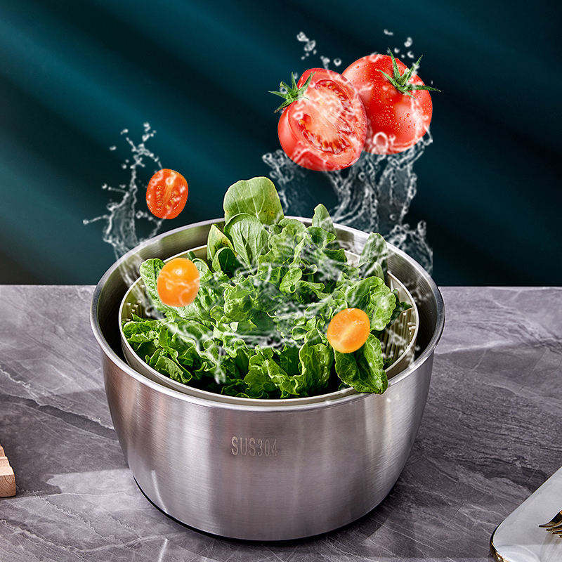 Grand ensemble de saladiers en acier inoxydable écologiques, compatibles lave-vaisselle, avec couvercle autobloquant pour légumes et fruits