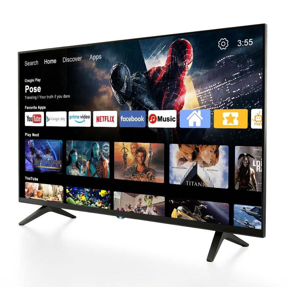 Téléviseur intelligent QLED UHD grand format 32-75 pouces Android WiFi Google 2K 4K HDTV avec panneau de qualité A+ Prise en charge multilingue Fabriqué en Chine