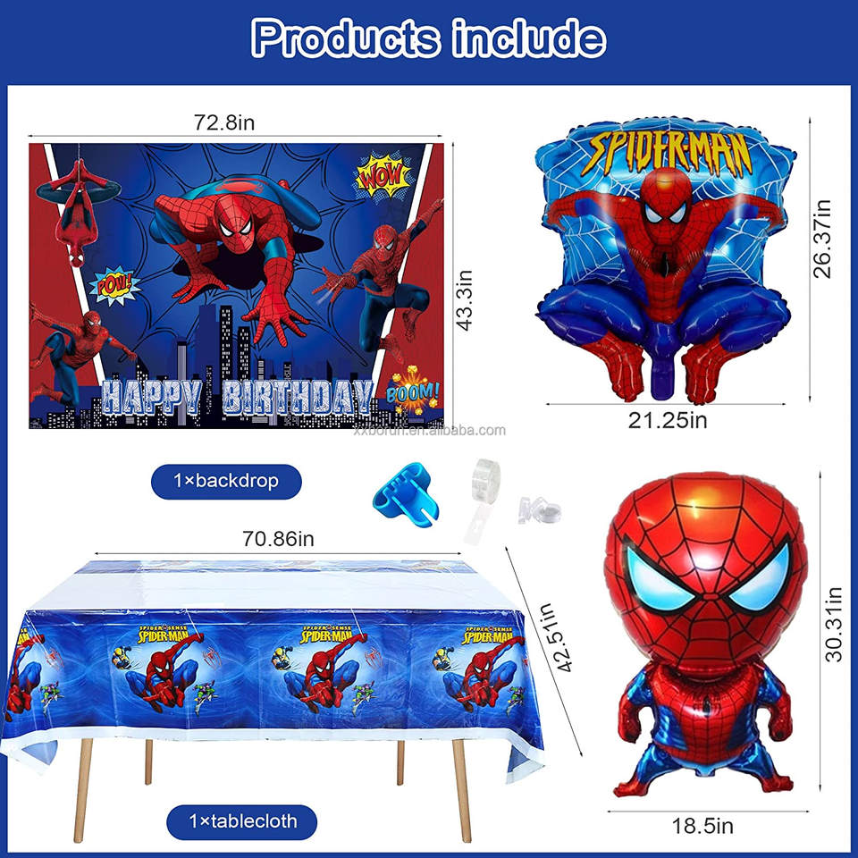 Grande Arche de Guirlande de Ballons Personnalisée Super-Héros Spiderman avec Ballons en Latex Bleu Rouge, Ballons en Aluminium Dessin Animé et Bannière Joyeux Anniversaire