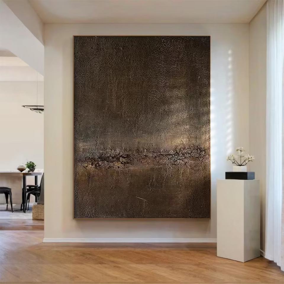 Grande toile abstraite texturée Wabi-Sabi, art mural 3D fait main, peinture murale, cadeau pour l'inauguration d'une maison