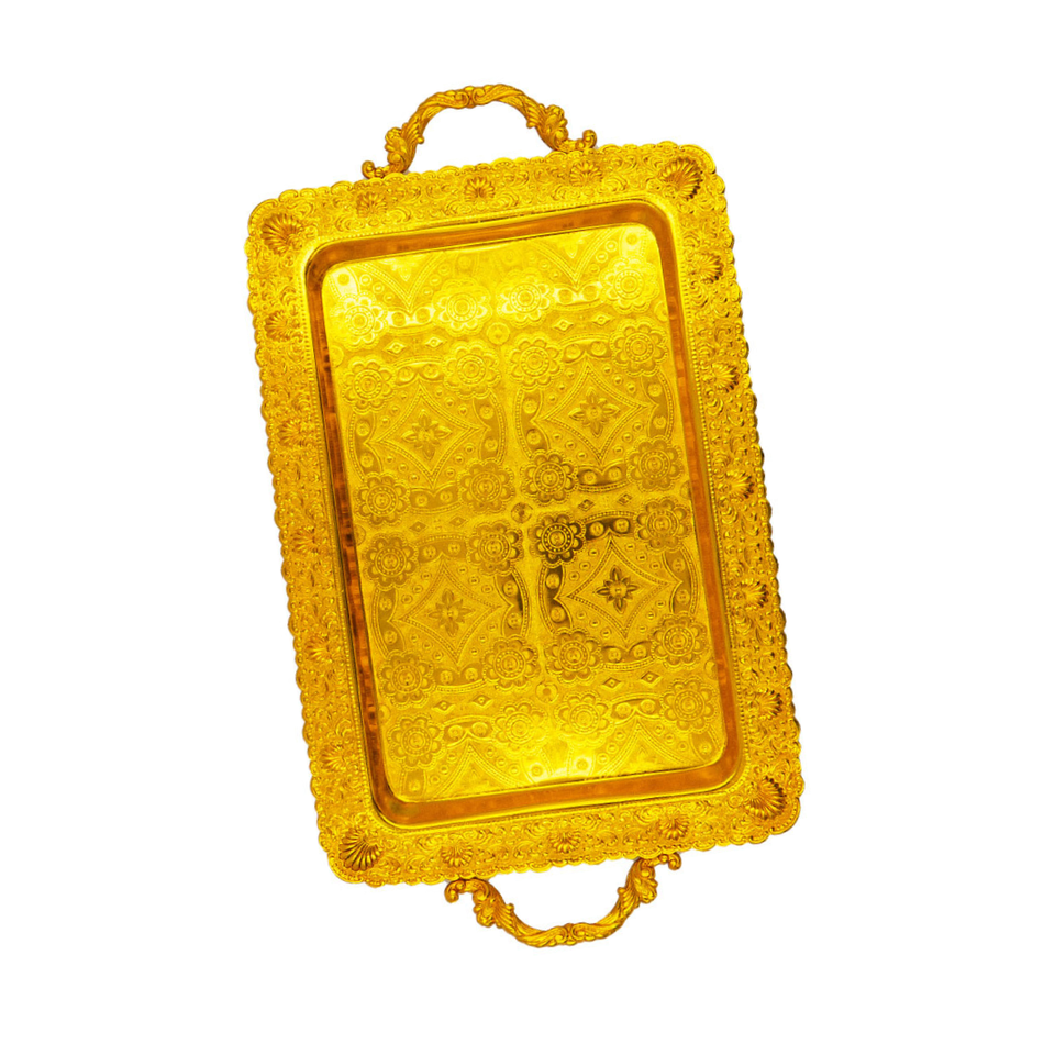 Grandes assiettes de table thaïlandaises taille 44 cm. Plateau carré en aluminium doré Design thaïlandais Plateau de service pour restaurant de Thaïlande