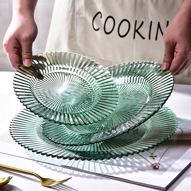 Grande assiette en verre Origami créative transparente jetable fruits tapis de nourriture occidentale coloré ménage gros plats plante