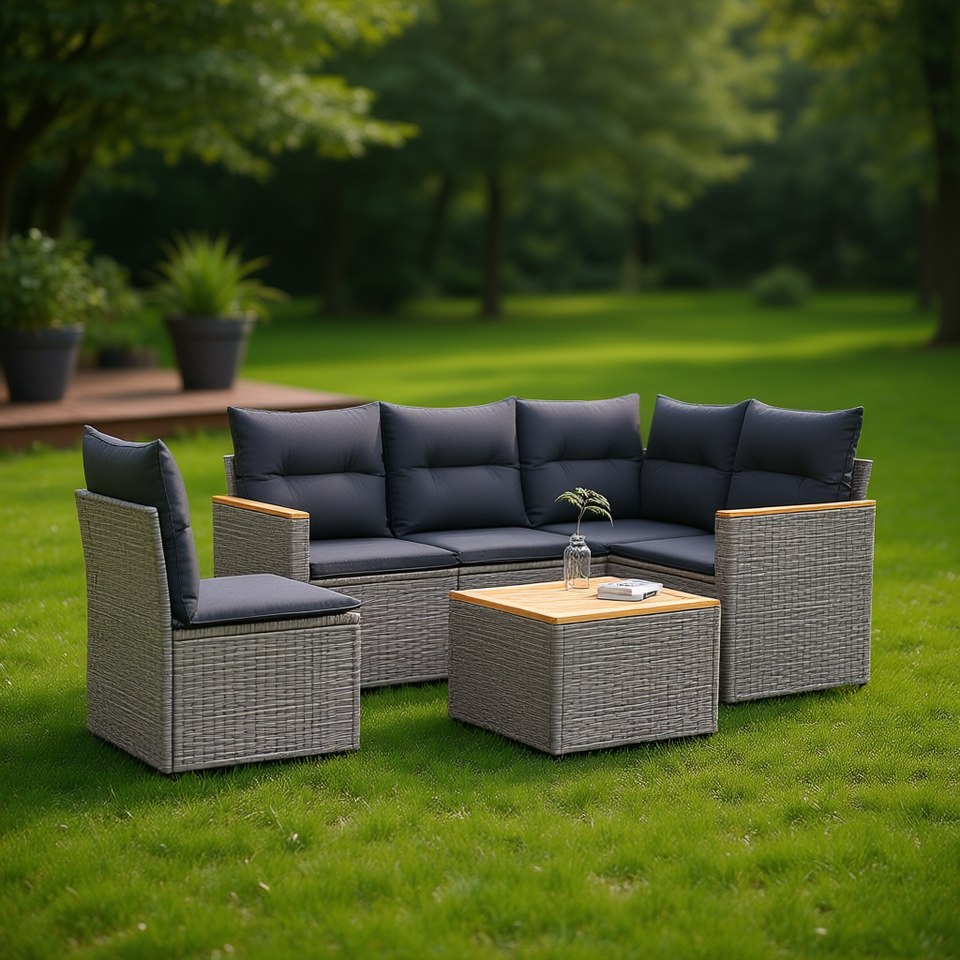 Ensemble de canapés de jardin gris en rotin PE, 4 places, résistant aux UV, design contemporain pour terrasse et jardin