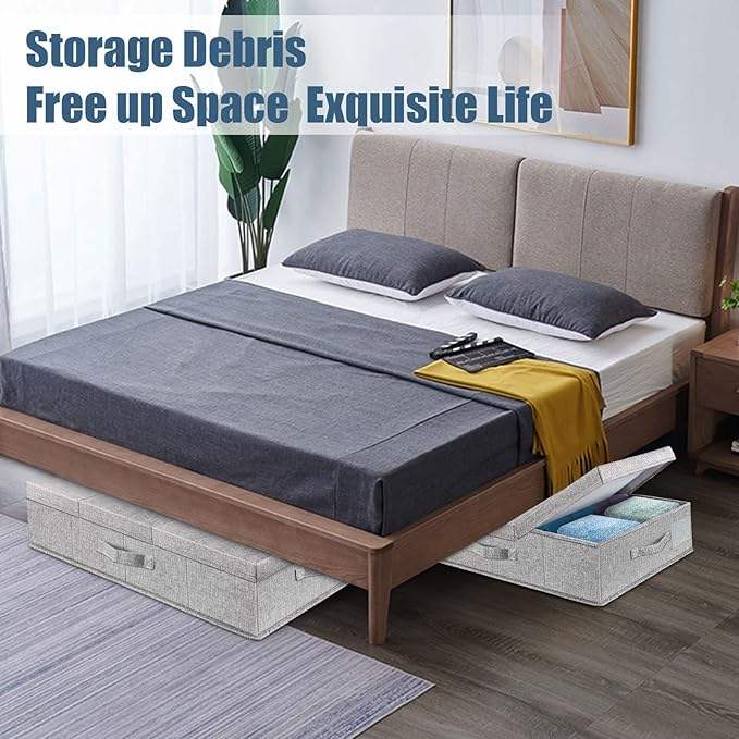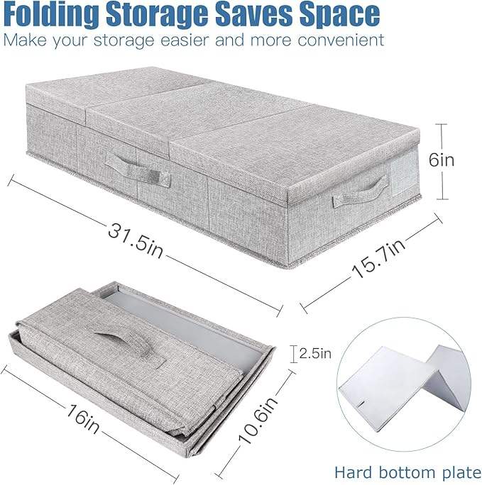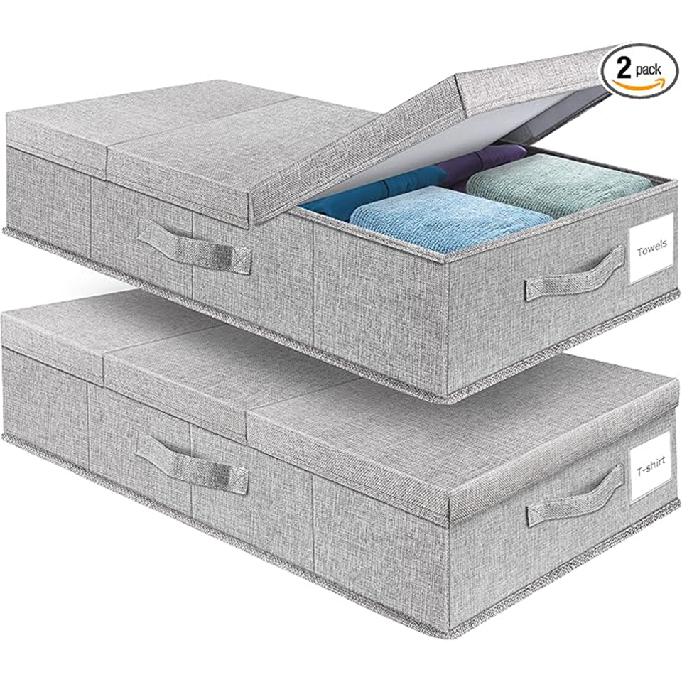 Grands tiroirs sous le lit couvercle pliable profil bas bacs empilables fenêtre transparente 4 poignées pour vêtements sous le lit conteneurs de stockage