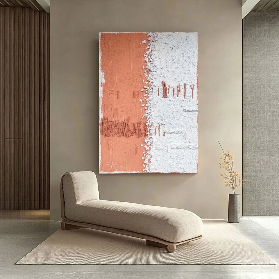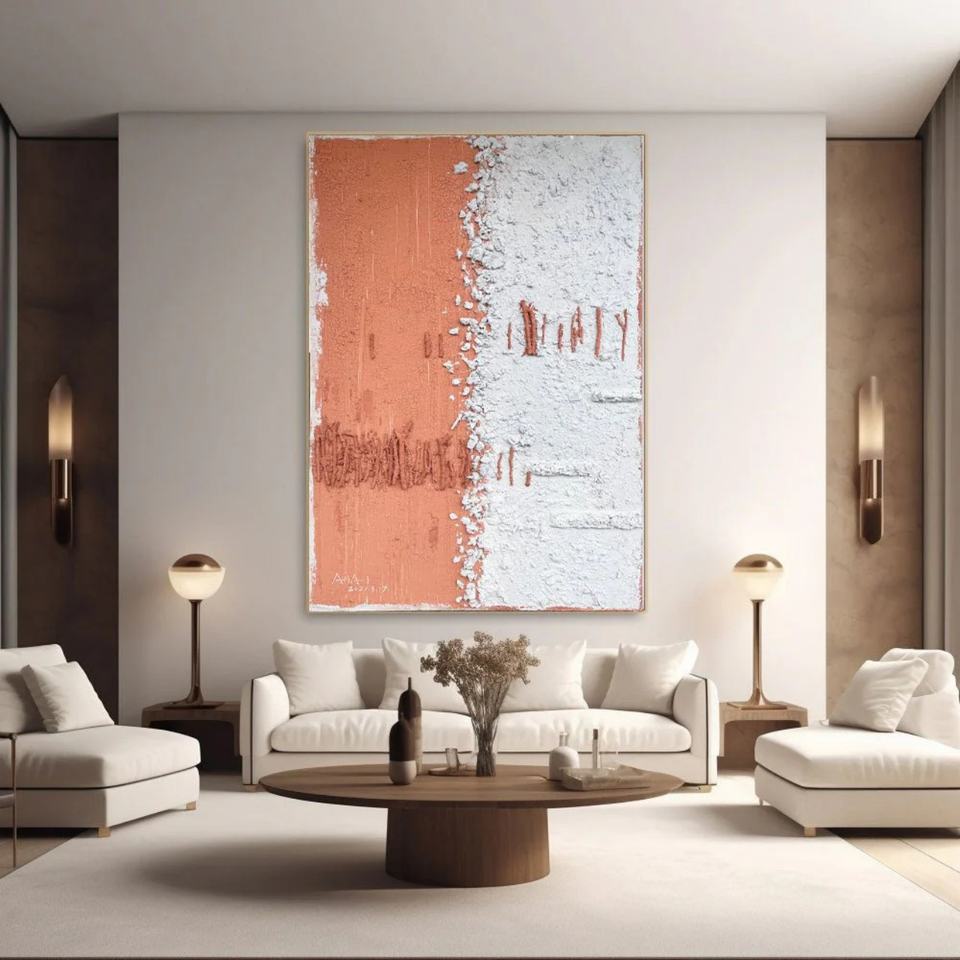 Grande Peinture Murale Abstraite Verticale Minimaliste Créative Faite à la Main en Acrylique sur Toile, Art Contemporain 3D, Cadeau pour