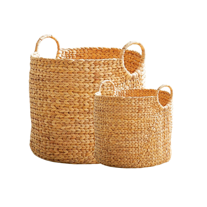Large Vietnamese Round WATER HYACINTH BASKET Laundry Basket with Reinforced Handles Durable, Decorative Hamper Laundry Organizer